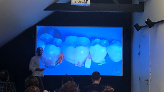 Il a une nouvelle fois, avec beaucoup d’humilité et grâce à l’outil vidéo en direct, montré le pas à pas de deux préparations pour des restaurations adhésives indirectes et leur empreinte numérique sous champ opératoire.